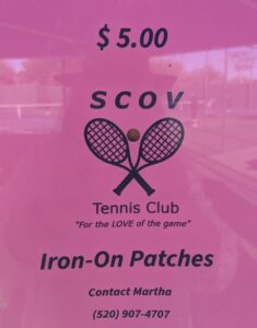 • SCOV Tennis Club Iron On Don’t forget to order your SCOV Tennis Club Iron On!  Can be ironed onto your favorite tennis shirt.  Or your shorts…